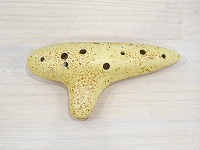 コメント:ピエタオカリナは、栃木県在住の製作者・丸山金造さんによって作られています。丸山さんは、名匠・火山久先生の弟子として、その技術を受け継ぎながらも、独自のアレンジを加え、オリジナルの音色を追求しています。 ピエタオカリナの音色は、とても素直で優しく、聴く人の心をそっと温かく包み込んでくれるようです。演奏中には、ほんのりとかすれた音が感じられることもありますが、これは個体差によるものではなく、ピエタオカリナ特有の魅力です。まるで風がサーッと通り抜けるような、自然に溶け込むような響きが特徴です。最低音は昔ながらのスタイルを貫き、シ(実音でミ)までとなります。(11穴)息は少なめで、息を入れた時の抵抗感はほとんどなく、入れた息がそのまま音に変わるのがおもしろいところですね。 |