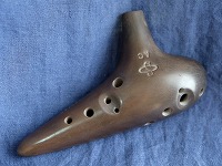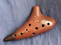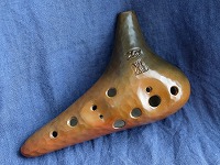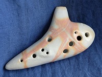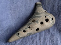 コメント:淡路の土を用い、淡路瓦の製法を取り入れて作られた軽量なオカリナです。普通の息で、高音はやや強めの息で吹けます。哀愁を帯びた音色でたっぷりと音量豊かに響き、低音から高音までスッキリとよく鳴らせます。コントロールしやすく、表情のつけやすい楽器です。指穴の配置もちょうどよく、指穴が小さめで、初心者にも親しみやすいオカリナです。文句なしの★5です。 |