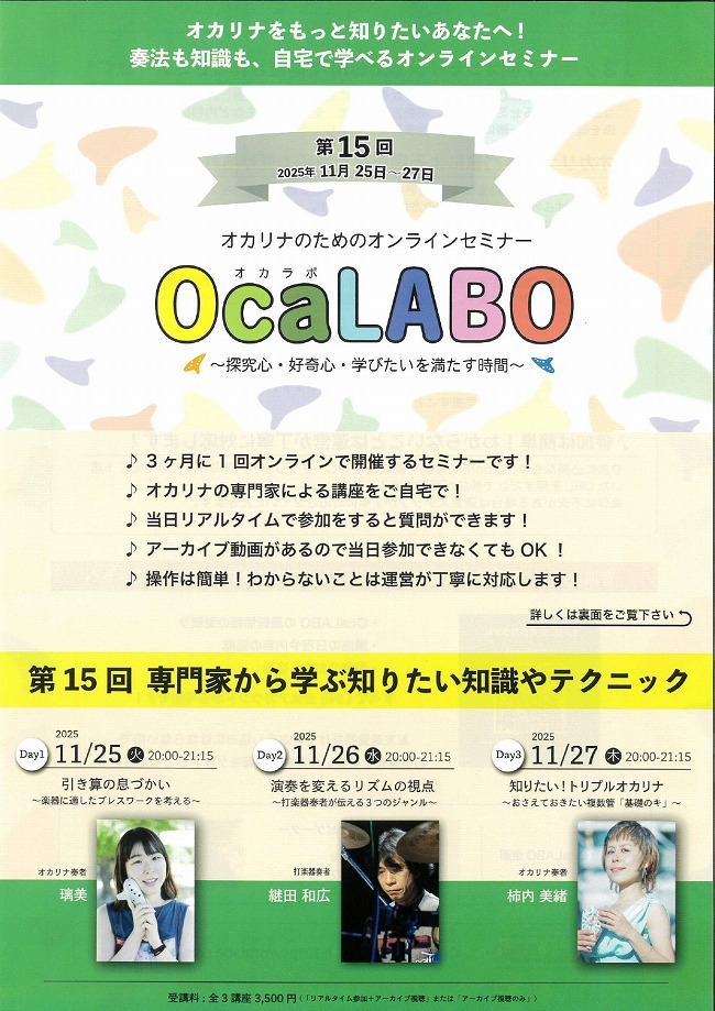 オカリナのためのオンラインセミナー OcaLABO 〜探究心・好奇心・学びたいを満たす時間〜