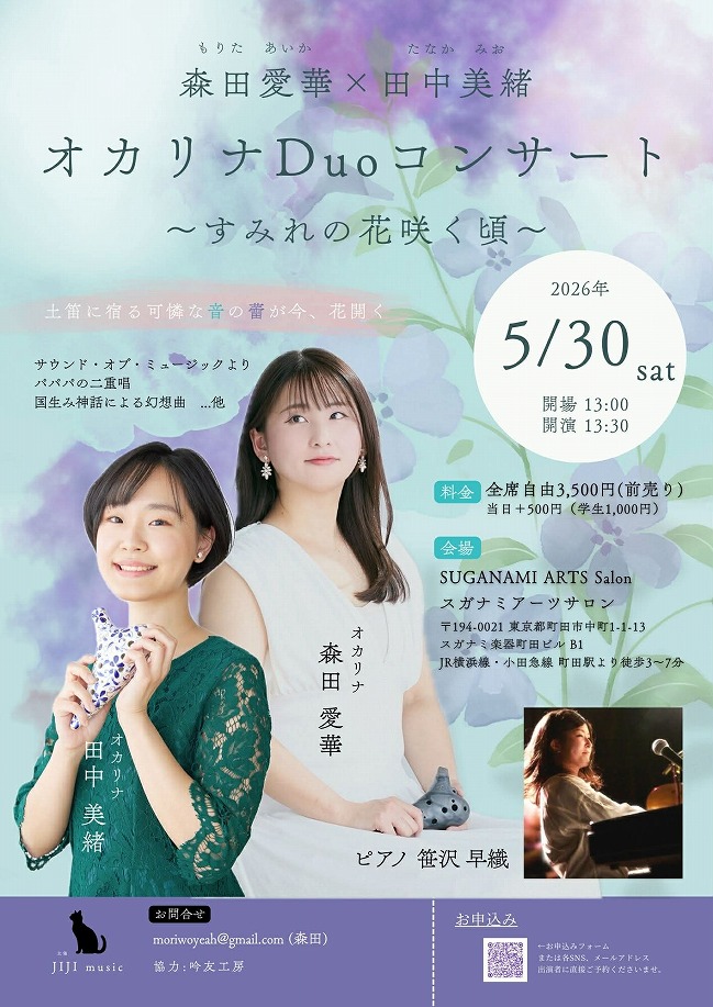 森田愛華×田中美緒 オカリナデュオコンサート 〜すみれの花咲く頃〜