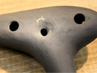 ひぐらしオカリナの製作者は『ハンドメイドオカリナ』の著者でも知られる鈴木のぼる氏。千葉県松戸市に工房を構え、シングル管からトリプル管まで様々なオカリナを制作されています。 当店ではそんなひぐらしオカリナのたくさんのラインナップの中から、私たちが気に入ったシングル管をご紹介させていただきます。 ◆数多くのオカリナがある中でひぐらしオカリナはもっとも『和』な印象を感じることのできるオカリナです。墨で焼成された表情の土に黄金の「蜩(ひぐらし)」の文字が入り存在感があります。 音色はとても優しく響豊かで、高音も非常にのびやか。素晴らしいオカリナです。やはり関東のオカリナらしく高音部はどちらかというと優しく吹き込み優しい音色を楽しむことができます(高音部は体に近づけるとスッと音が抜けます)。手作りの感じが存分に感じられるオカリナ。ぜひご利用ください♪ |