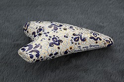 オカリナ好きの方はご存知でしょう。 超有名プレーヤー「大沢聡(おおさわさとし)」が使用していることで有名な「(ティアーモ)ファエンツァモデル」本物です! ステージで演奏した時にキラッと一瞬光るオカリナ見たことありますか? あのオカリナがファエンツァモデルです。 このファエンツァモデルは値段を見てもわかると思いますが 超こだわりの一級品。 まず簡単ではありますが、ファエンツァの作業内容をご紹介させて頂きます。 【作業内容】 1、イタリアからオカリナの素材となる「土」を日本へ輸入します。 2、神奈川県茅ヶ崎市に届けられた「土」は職人:吉田雅和氏により形作られ、焼きを入れます。 3、焼きあがったオカリナは高級陶器の町「イタリア/Faenza(ファエンツァ)」に送られ、絵付けされ、本焼きされます。 4、本焼きされたオカリナは再度、日本へ送られ、厳しい検品でふるいにかけ、良品のみ、「ティアーモオカリナ"ファエンツァ"」として販売されます。 ダブルオカリナを簡単に説明すると2つのオカリナを1つに合体させ通常「21音」しか出ない音域を「28音」出る様に設計された楽器です。 当然吹き口も2つございます(左の写真)。左の吹き口は「低いラ」から「高いミ♭」まで出ます。 次に右の吹き口に切り替えると「ミ♭」からアルトC管の最高音「ファ」の音を通り越してさらに高い「ド」まで出ます。 ダブルオカリナは音色に難ありという方が多かったですが(最近は音色が良い物もたくさんございます。)このファエンツァダブルは非常にクリアーで遠くまで響きわたり、上質の一連のオカリナの音色が最低音から最高音まででます。 吹奏感については低音はやさしい息で「ポッ」と鳴り、高音域になるにつれて、程よい抵抗感が生まれ、音楽表現しやすいです。 バラつきも大変少ない機種になりますが、当店できっちり検品してお届けさせて頂きますので、安心して演奏をお楽しみください。 |